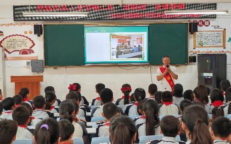 近日,开远市总工会组织开展“劳模工匠进校园”宣讲活动,全国农业农村劳动模范、红河州劳动模范李文祥走进西湖小学与150名师生面对面互动,用劳模精神、劳动精神、工匠精神点亮学生的“匠心梦”。