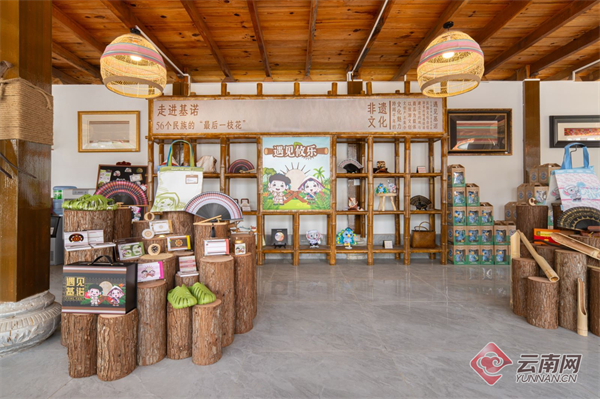 2024年6月,遇见基诺·攸乐文创生活馆落地云南省西双版纳傣族自治州景洪市基诺山基诺族乡巴朵村民小组,位于巴朵村村史馆一楼,馆内设置了文创展示销售、阅读、茶歇等空间功能。这里内容多元有趣,结合基诺山乡IP形象“攸攸”“乐乐”、基诺大鼓、月亮花等元素,将多彩的基诺族文化创新表达,传递第56个民族的独特魅力与文化价值。