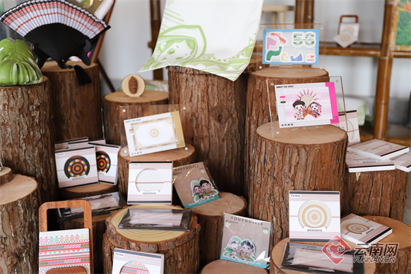 文创生活馆里集中展示了贴纸、明信片、折扇、印章、杯垫、背包等可以“带走”的基诺族文化,20余款文化创意产品各具巧思,充满生活气息,将基诺族的文化故事以文创产品的形式一遍又一遍地讲述给往来的友人、游客,让文化焕发新活力。