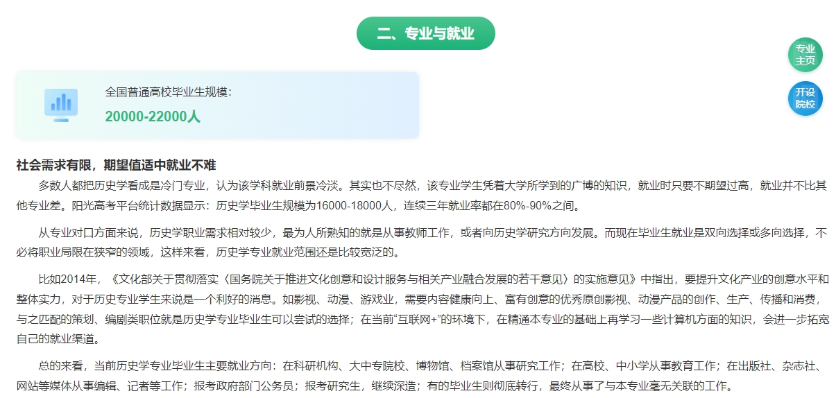 “阳光高考”信息平台下关于历史学的就业分析截图