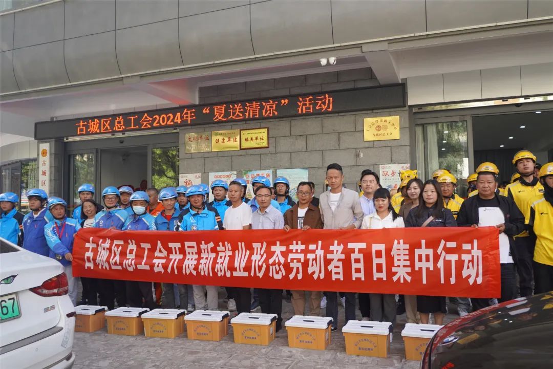 宣讲活动结束后,古城区总工会开展新就业形态劳动者“夏送清凉”活动。参与宣讲活动的小哥们收到了总工会赠送的清凉大礼包,并叮嘱他们在工作中要注意安全、在生活中要关注身体,更好地为社会贡献力量;在之后的工作中,丽江市总工会将依托各级工会系统持续开展“夏日送清凉”活动,让“小活动”释放“大关爱”,让“送清凉”不只是送清凉。