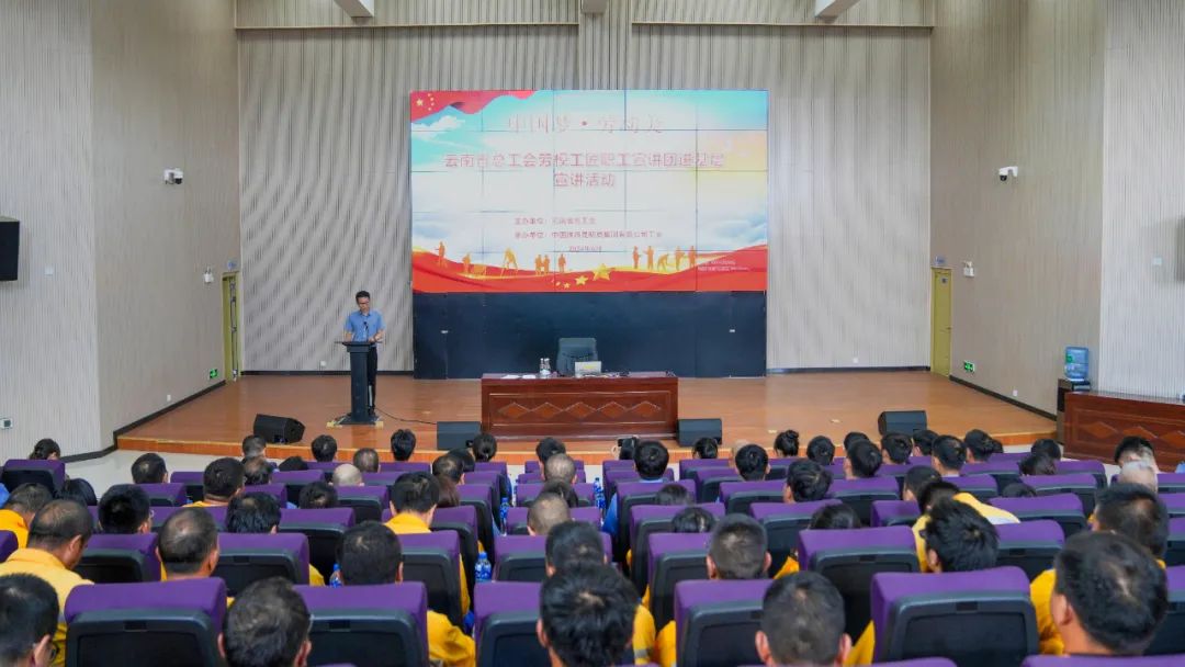 为深入学习宣传贯彻党的二十大精神和习近平总书记“五一”国际劳动节前夕的重要指示精神,进一步弘扬劳模精神、劳动精神、工匠精神,充分发挥云南省总工会劳模工匠职工宣讲团作用,带动广大职工对标先进、学习先进、争当先进,由云南省总工会主办、中国铁路昆明局集团有限公司工会承办的“中国梦•劳动美”云南省总工会劳模工匠职工宣讲团进基层宣讲活动6月21日在昆明北车辆段职工培训基地举办,来自昆东片区8个单位的150名产业工人现场聆听宣讲。