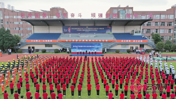 青春女高红,蓝焰伴成长。7月16日,“七一勋章”获得者张桂梅同志带领丽江市华坪县女子高级中学385名师生,走进云南省消防救援总队训练与战勤保障支队,正式开启华坪女高2024年暑期社会实践活动。实践活动启动仪式由云南省消防救援总队总队长主持,总队政治委员致欢迎辞。华坪女高师生和云南省消防救援总队机关、昆明支队、丽江支队、训练与战勤保障支队指战员530余人参加仪式。