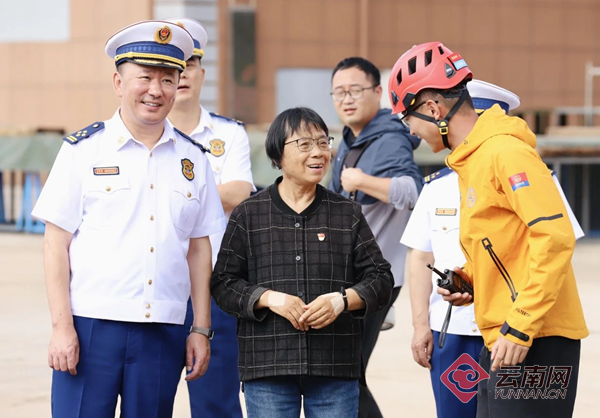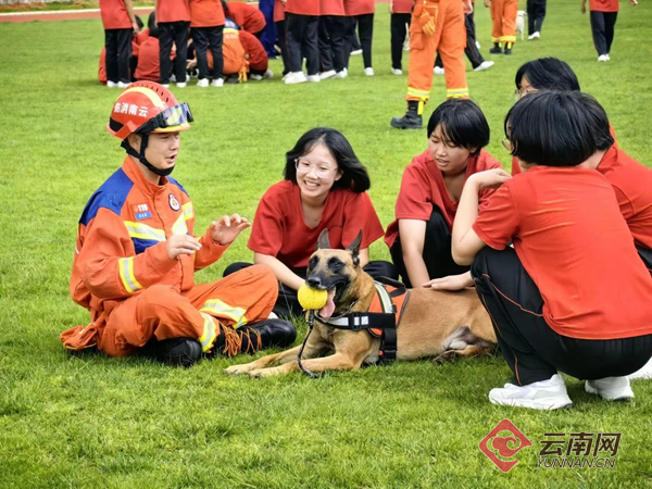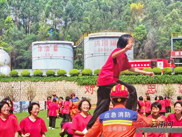 仪式结束后,张桂梅老师与华坪女高的师生们,参观了消防车辆和器材装备,观摩了消防搜救犬、高空绳索救援、百米救助训练操、纵深灭火救人操等20余个训练演示科目。特别是在现场体验环节,兴高采烈的华坪女高师生们踊跃尝试,有的首次爬上斜楼、体验绳索“空中飞人”,有的穿上战斗服、抱起水枪当起了“消防员”,有的与消防搜救犬“亲密接触”,与消防车、消防员合影留念,翻“障碍板”、过“独木桥”、爬“训练塔”......现场气氛热烈、欢笑不断。大家既学到了消防知识,又放松了身心,享受了一次难忘的消防体验。