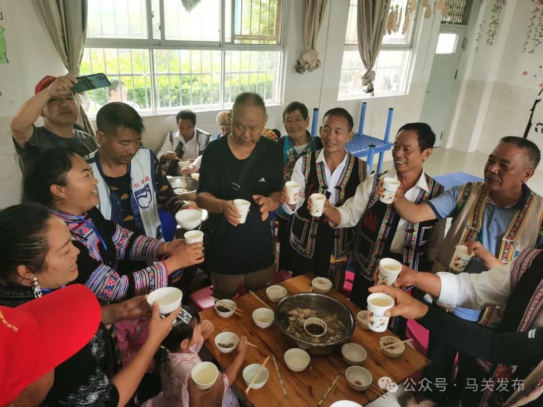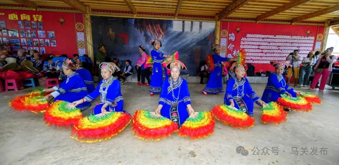 下午,文艺表演正式开始。马关县彝学会、八寨浪桥文艺队、小坝子文艺队等多个民间表演队伍为观众们带来了《欢乐的彝山》《左脚舞》《牧归的阿佳》等20余个节目。随着精彩节目的轮番上演,广大游客和当地群众们感受了一场精彩纷呈的文化盛宴。各文艺队载歌载舞,欢聚一堂,生动地描绘出了大山深处的各族儿女携手团结奋进,共创美好生活的农村新画卷。