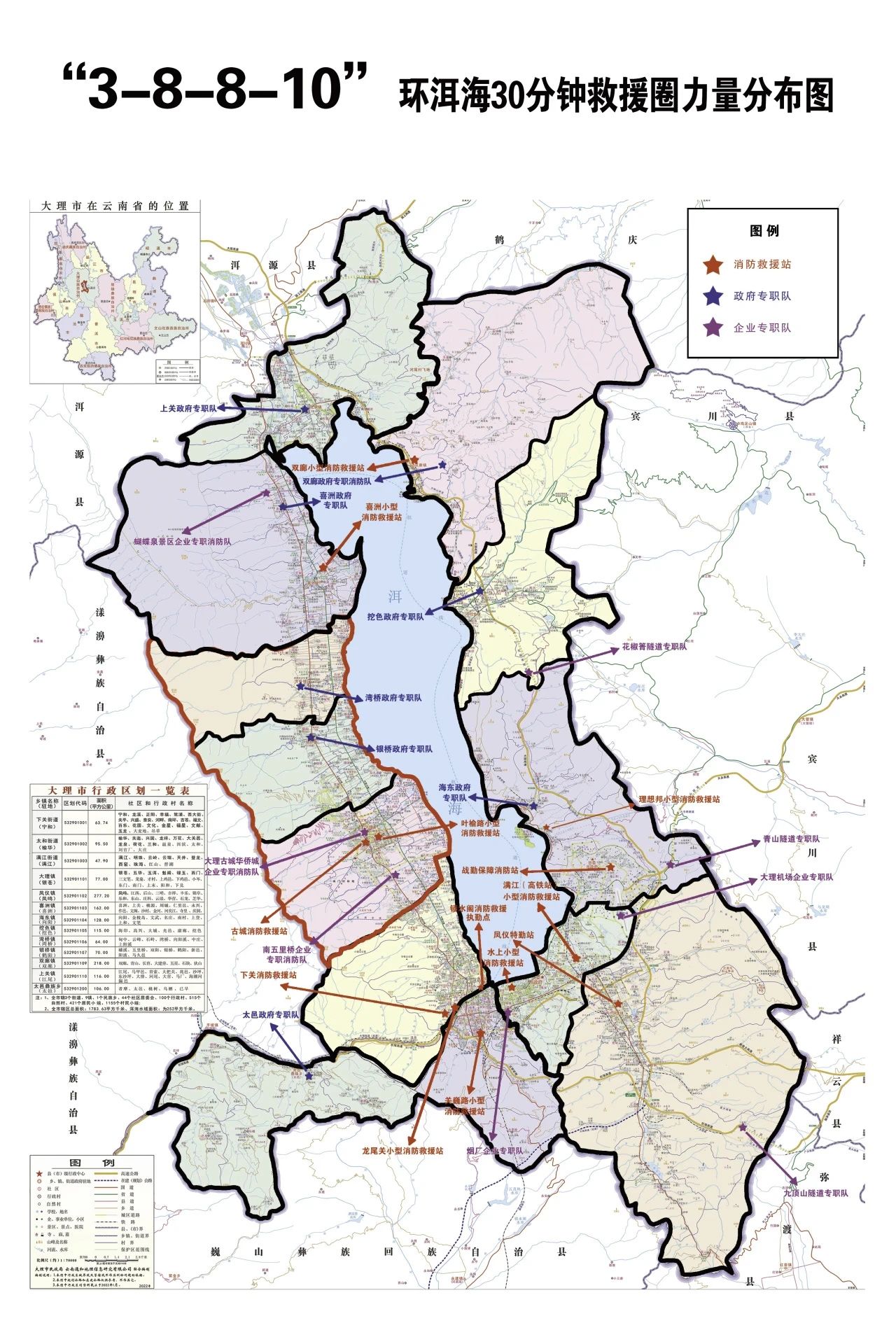 按照建设“城市消防站—小型消防站—专职消防队”一张网体系。在城市中心区,建设大理市“一圈三核多支点”应急救援区块联动模式,形成“3-8-8-16”“环洱海20分钟救援圈”(即:建强3个城市消防站、建实8支乡镇专职队、统筹8支企业专职队、建精16支小型站)。