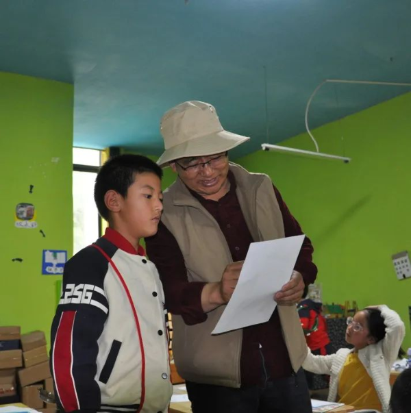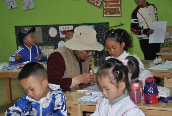 鲁茸吉称说,他只是想让唐卡被更多人了解,被更多人喜爱。授课期间,他一直面带着慈爱的微笑,在面对孩子们时,鲁茸吉称半蹲在书桌前,耐心的解答着他们的疑问。