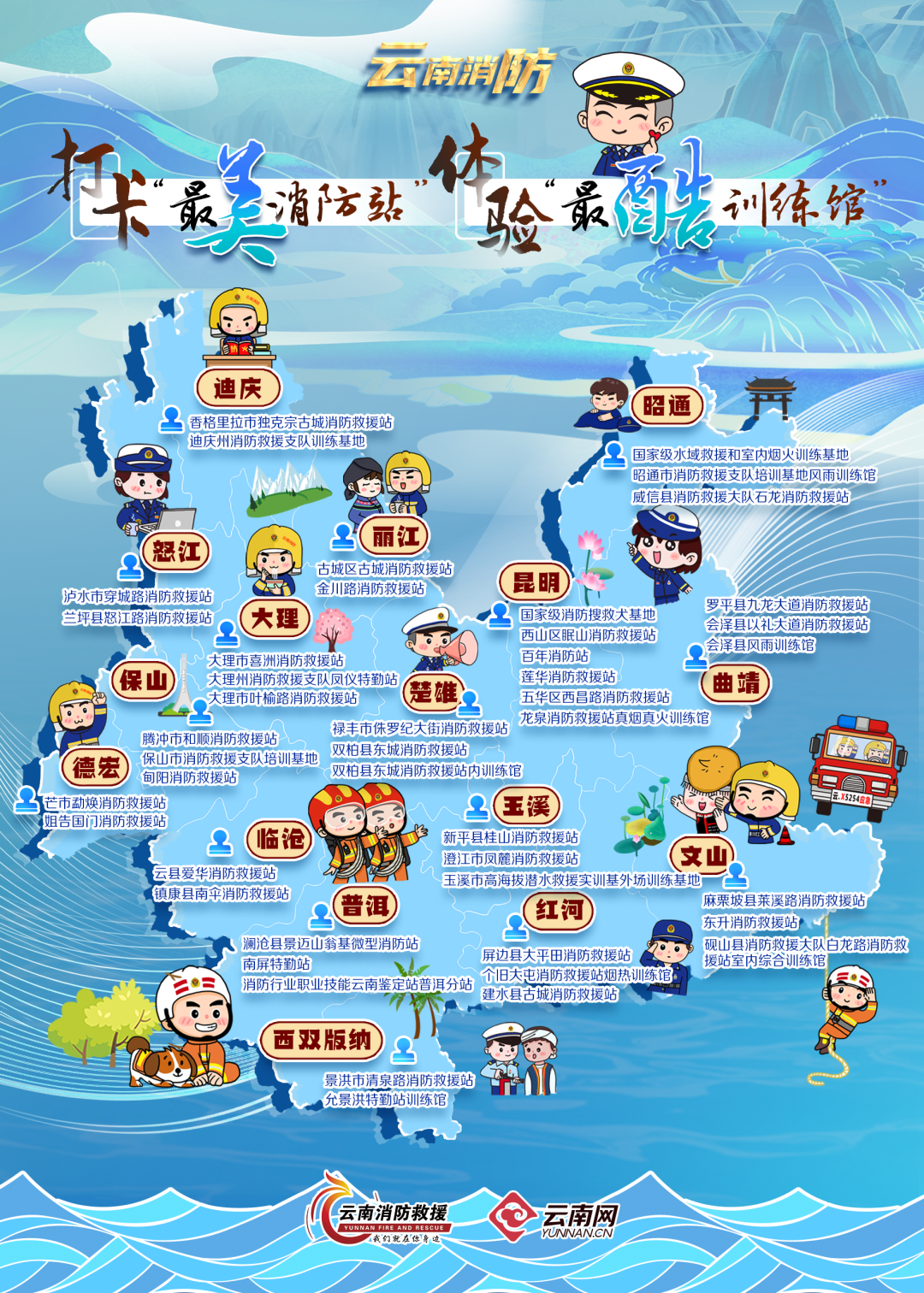 全省共45个消防队站、应急科普教育基地集中对外开放,群众可通过“云南消防”微信公众号“打卡地图”选择心仪的队站预约参观体验,看蓝朋友“漫步”云端、勇闯激流、真火淬钢,与又萌又飒的搜救犬亲密互动,学习更多的消防安全科普知识。