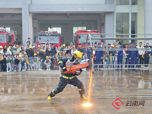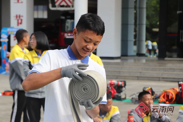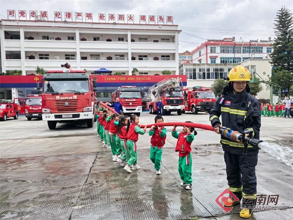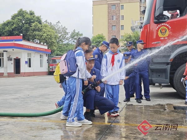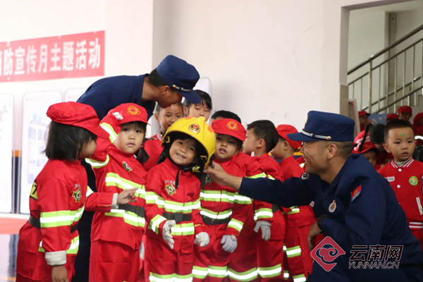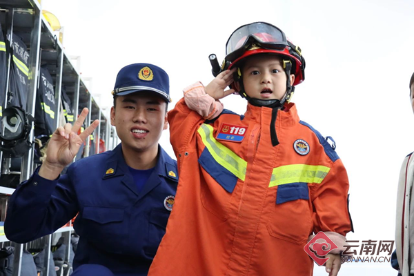 在文山州西畴县东升消防救援站,孩子们第一次穿上了抢险救援服,还体验了油盆灭火、烟道逃生等。临别前,可爱的孩子们为消防叔叔们送上礼物,表达了敬意。