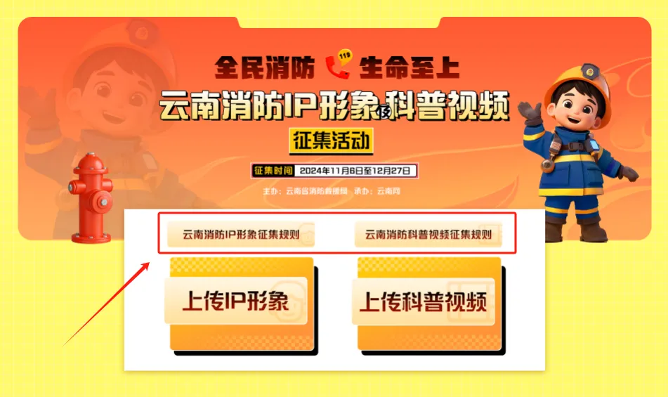 2.在“云南发布”微信公众号首页点击菜单栏“互动活动”“消防征集”,或在“云南消防”微信公众号首页点击菜单栏“消防助手”“消防征集活动”,即可进入活动页面。