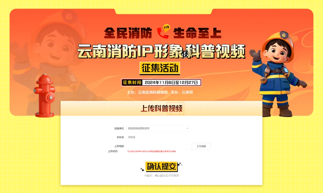 4.上传征集内容时,视频须为MP4、MOV、AVI格式,最大限制为200M,PDF附件最大限制为50M。上传后不可修改,请检查无误后再上传。考虑文件上传稳定性,建议将网址复制到电脑浏览器,使用电脑浏览器上传。