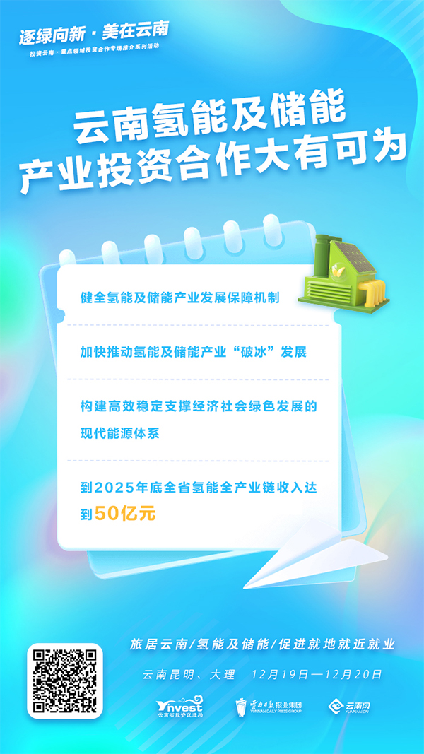 投资云南·氢能及储能投资合作专题推介会在昆明举行,邀请了中城工业集团、万帮数字能源、浙江安吉智电、陕西氢能、南方电网综合能源等30余家氢能储能企业参会。省投资促进局、省工业和信息化厅、丽江市政府,相关州市投促部门、发改部门、工信部门,高新区、产业园区,与企业共商合作。会上,安宁产业园区、禄丰产业园区、丽江金山高新技术产业开发区向企业家推介了锂电池生产项目、全钒液流电池储能项目、氢燃料电池系统生产项目等重点项目;长城企业战略研究所发布了云南省在氢能及储能产业“投资机会清单”“敏感要素清单”,从场景、能源、空间、资源、产业、政策等多维度分析云南发展氢能储能产业的核心竞争力,引起与会企业的强烈反响。