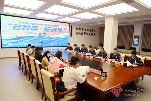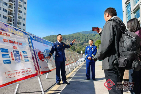 在昆明,采访团走进盘龙区席子营社区,大队通过生动的“消防院坝课堂”和“救我需要多久”自救逃生演练等活动展示了宣传工作创新形式。