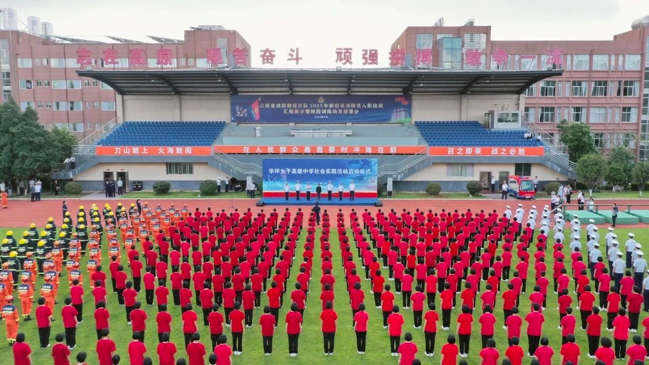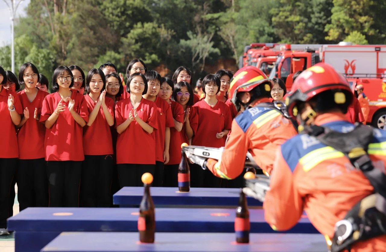 2024年7月,张桂梅老师携华坪女高师生,走进云南消防,开展暑期社会实践活动。“女高红”与“火焰蓝”共赴一场盛夏之约。