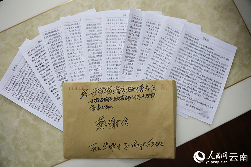香甜可口的饭菜、良好的住宿环境、烈日下消防指战员响亮的口号和坚毅的身影……这是华坪女高的同学们在感谢信里出现的高频场景。“白板反光,你们就给我们安装了黑板。”“7月21日的饺子里包的是你们的爱。”“7月28日晚上的集体生日,谢谢哥哥们的惊喜,你们胜似亲人。”“下雨天,提醒我们路滑,让我们慢点跑。”张桂梅老师和孩子们写的感谢信,字字真切,让消防员感动。