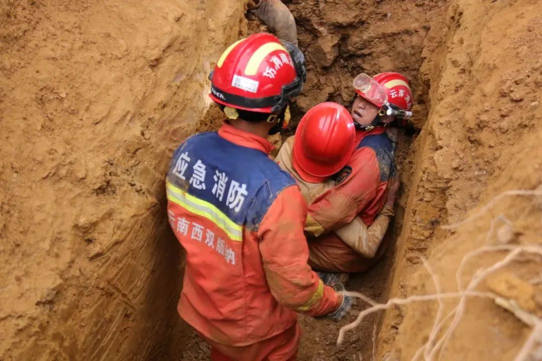 2024年5月17日,西双版纳州景洪市某地发生土坡塌方,消防员连续奋战6个小时,营救出被困人员。