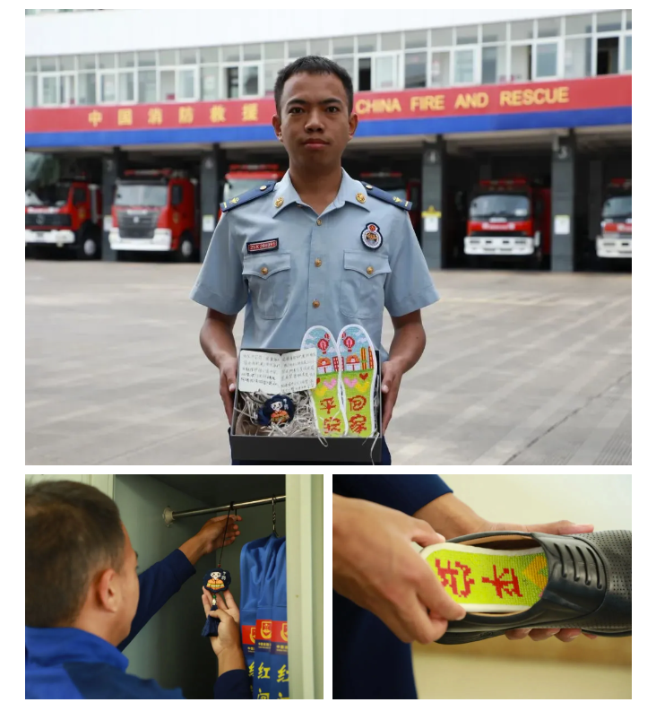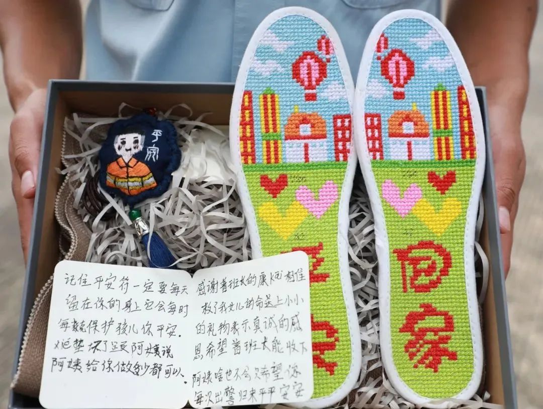 善心终究没有被辜负。6月,阿姨又来到消防站,将一个绣有消防员及消防车的平安符,一双绣有“平安回家”字样的鞋垫送到了普庆华手上,一双朴实无华的鞋垫,但让人仿佛看到垫上它的消防员,瞬间变得更加高大,因为脚下已被真心稳稳地托起。