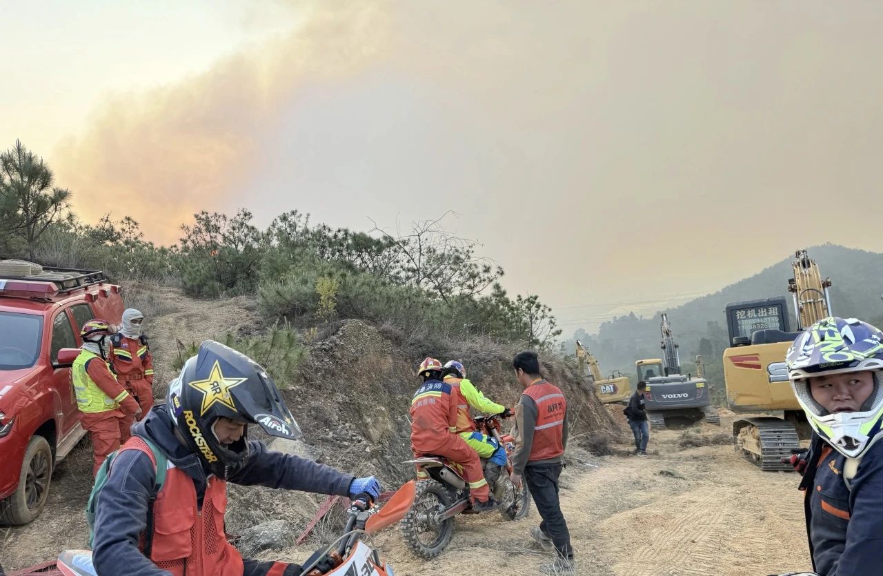 2024年4月12日,昆明市晋宁区大黑山突发森林火情,云南消防救援力量快速反应,昼夜奋战在火场一线,扭转火场战局,全力守护民生民安。晋宁群众也纷纷到一线,为消防员鼓劲加油、提供帮助。越野摩托爱好者们也一路疾驰,往返于集结点和前沿阵地之间,不间断运送消防人员、器材、饮用水……这一场双向奔赴,诠释了责任与担当,写满了信任和感动。