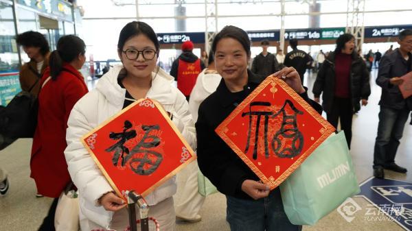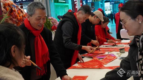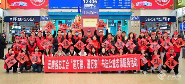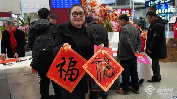 1月22日,新春佳节前夕,为积极弘扬和传承中华优秀传统文化,营造温馨和谐的节日氛围,由云南省总工会主办,中国铁路昆明局集团工会和省总直属机关团委组织的“送万福、进万家”书法公益志愿服务活动在昆明火车站举行。