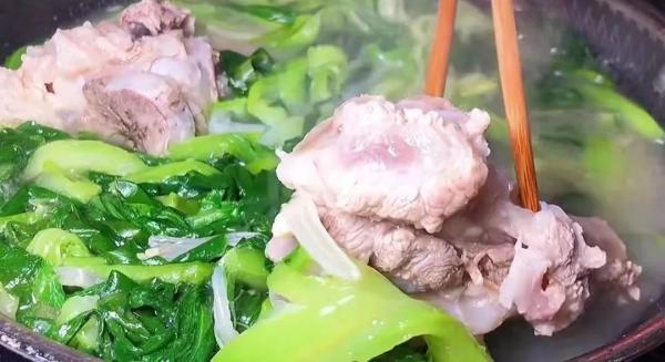 锅中用骨汤慢炖的“长菜” 图源:“官渡文旅”微信公众号