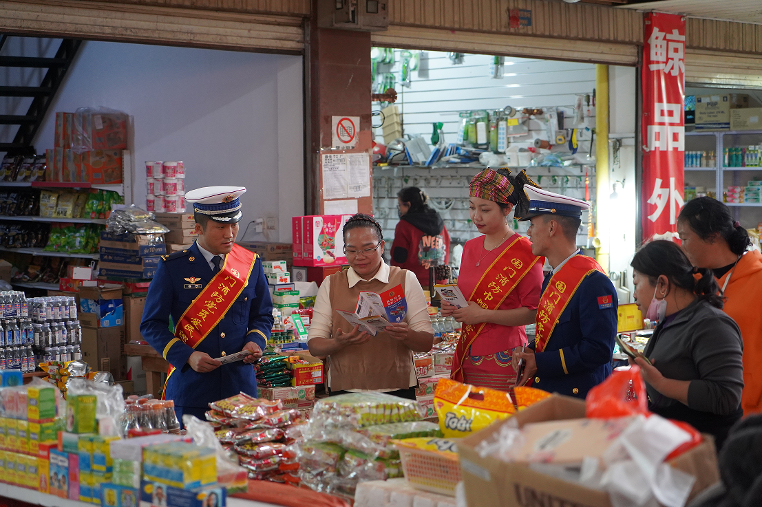 姐告边境贸易区,这个与缅甸木姐市隔江相望的地方,是国家“桥头堡”战略的重要口岸。春节期间,这里游客如织,热闹非凡。为了保障游客和群众的安全,党员爱民服务队加大了巡逻频次和时间,他们身着整齐划一的装备,在景点、国门、集贸市场等地开展为民服务巡查。