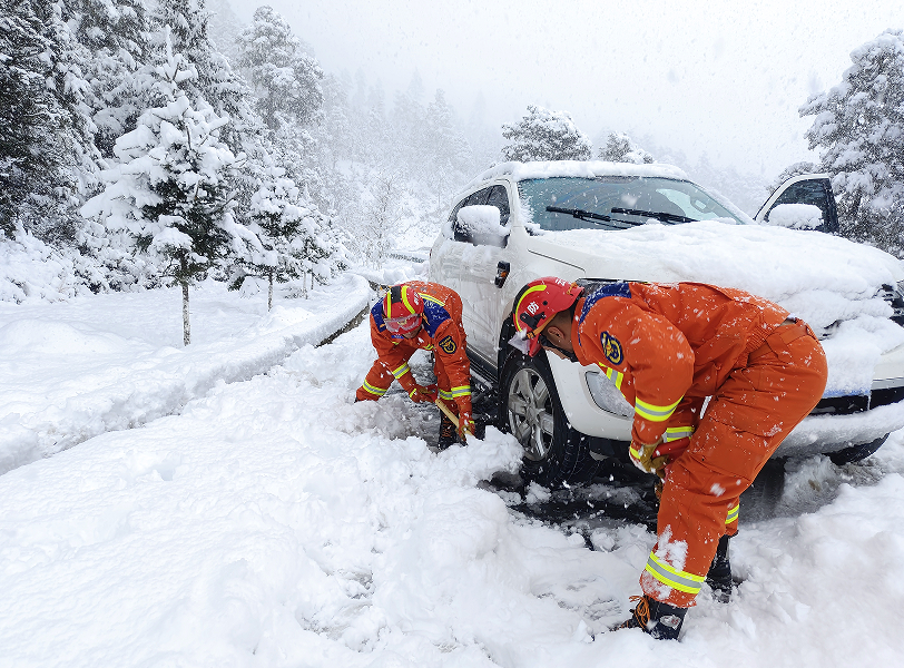 在一次救援行动中,几名外地游客被困白马雪山路段。面对70厘米深的积雪和阵阵寒风,队员们毫不畏惧,他们先转移被困人员,再清除积雪、固定车辆、拖拽脱困。经过一个小时的奋战,被困车辆成功脱险,车主感激不已。