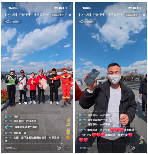 2月11日上午,“云南消防”与“云南交警”官方新媒体平台联合开展“消警”携手共话安全直播活动。据统计,近10万网民观看了这场直播,网友互动点赞5万次,取得了良好效果。