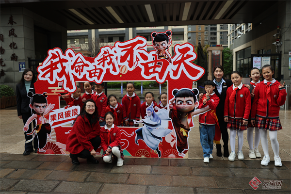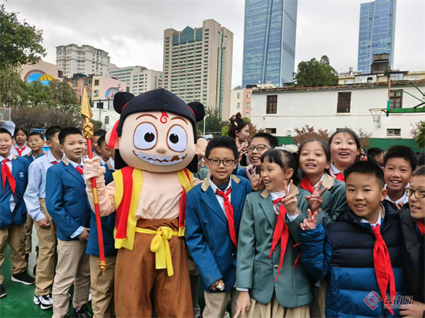 明通小学“哪吒”与同学们合影 校方供图