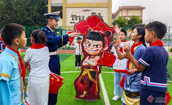 在普洱市景谷傣族彝族自治县,普洱市森林消防支队景谷中队的消防员们带着精心准备的哪吒模型和防火、地震科普常识,走进景谷县第二小学开展“开学第一课,平安伴左右”活动,消防员们采取课堂辅导、有奖问答、互动游戏等方式,以生动有趣的方式向学生们普及了森林火灾的危害、预防措施以及应急处理方法。