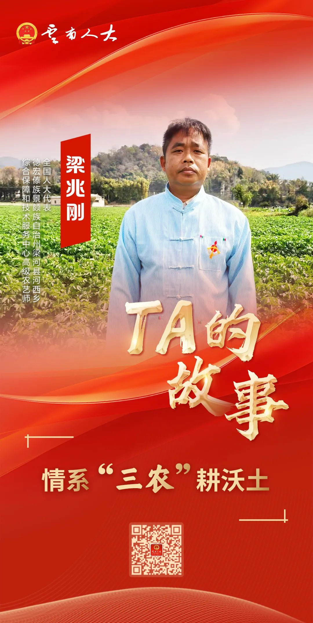 在德宏傣族景颇族自治州梁河县的田间地头,人们经常能看到一个忙碌的身影穿梭其中。他时而俯身察看作物长势,时而与农户交谈记录需求,时而手把手指导种植技术。他是全国人大代表、梁河县河西乡综合保障和技术服务中心高级农艺师梁兆刚。