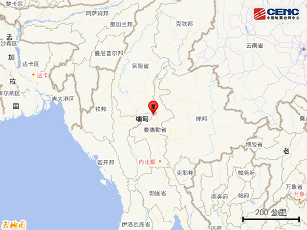 据中国地震台网正式测定,3月28日14时20分在缅甸发生7.9级地震,震源深度30公里,震中位于北纬21.85度,东经95.95度,距我国边境线最近约294公里。