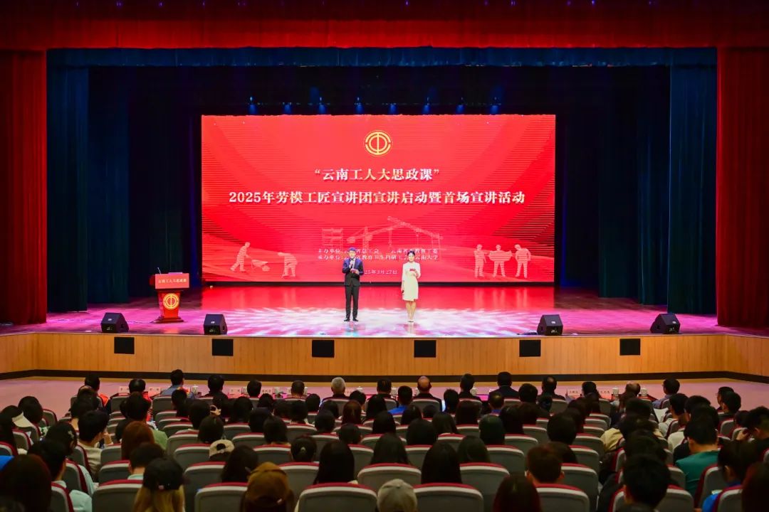 3月27日下午,云南大学呈贡校区学生会堂沐浴在和煦暖阳中,由云南省总工会、云南省委教育工委共同举办的“云南工人大思政课”2025年劳模工匠宣讲团宣讲启动暨首场宣讲活动在这里举行。