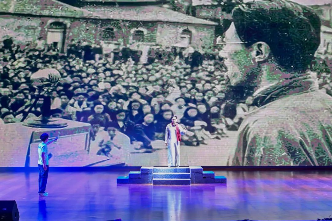 大屏幕上一帧黑白照片,让人的思绪回到了那个血雨腥风的年代;新时代波澜壮阔的画面,让人心潮澎湃。