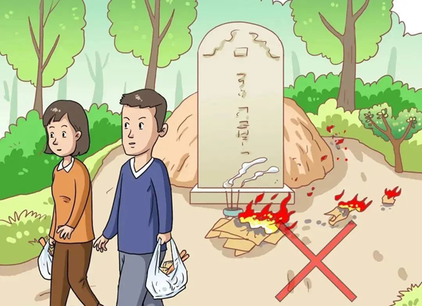 二、尽量选择网络祭扫、鲜花祭扫、丝带寄哀思、踏青遥祭、经典诵读等无烟火文明祭祀方式,表达对亲人、对先烈的思念与牵挂。在神龛、家堂、寺庙、道观、祠堂祭拜用的长明灯、香烛等要远离可燃物。
