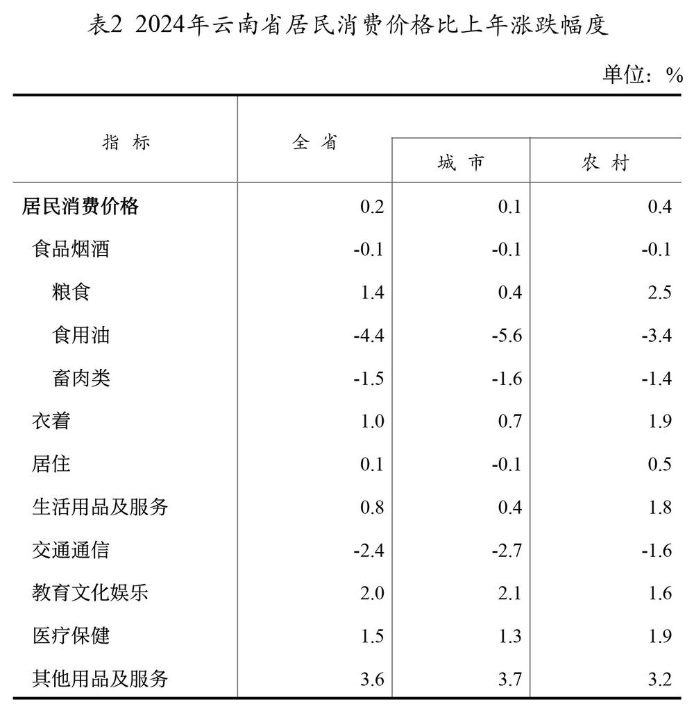 表2 2024年云南省居民消费价格比上年涨跌幅度