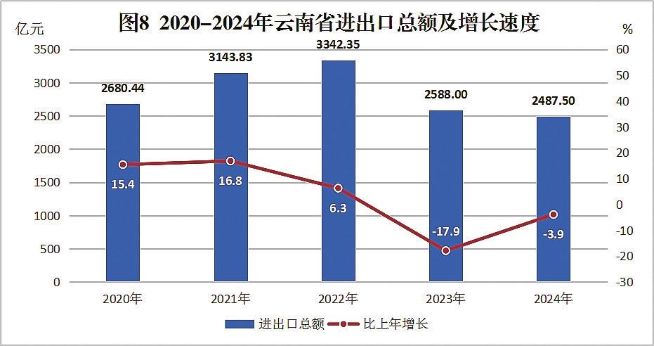 2024年是中华人民共和国成立75周年,是实现“十四五”规划目标任务的关键一年。面对外部压力加大,内部困难增多的复杂严峻形势,在以习近平同志为核心的党中央坚强领导下,省委、省政府团结带领全省各级各部门深入学习贯彻党的二十大和二十届二中、三中全会精神,深化落实习近平总书记考察云南重要讲话精神,紧扣“一个跨越”“三个定位”,坚持稳中求进工作总基调,完整、准确、全面贯彻新发展理念,积极服务和融入新发展格局,扎实推动高质量发展,锚定“3815”战略发展目标,按照守底线、稳支撑、增动力、上台阶的总体思路,坚定不移发展壮大资源经济、园区经济、口岸经济,持之以恒推进市场化、产业化、法治化、生态化、数字化进程,落实落细增量和存量政策,扎实推进稳增长解难题优环境百日攻坚行动,全力以赴抓项目、帮企业、育产业,难中求进、干中求进、变中求进、稳中求进,推动生产需求持续改善、就业物价总体稳定、民生保障有力有效、发展质效不断提升。全省经济运行总体平稳、稳中有进,转型升级和高质量发展稳步推进,走好了“三年上台阶”承上启下的关键一步。