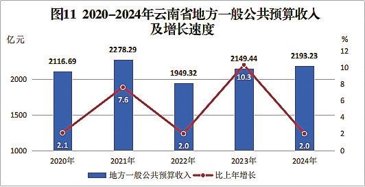 图11 2020—2024年云南省地方一般公共预算收入及增长速度