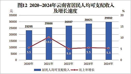 图12 2020—2024年云南省居民人均可支配收入及增长速度