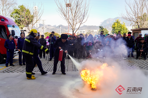 现场组织群众进行灭火器扑灭油盆实操演练。昭通市消防救援支队 供图