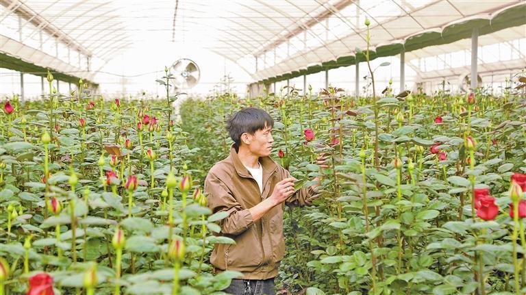 据了解,从鲜花种植、管护到采摘、分拣、包装都需要大量工人,附近很多村民实现了在“家门口”务工。家住彩云镇长街村的郭永辉主要负责水肥管理工作,之前他和妻子在浙江打拼,2023年花卉种植基地建成后,他们就回到家乡工作。“如今,在‘家门口’就把钱挣了,我们两口子一年能有10万元的收入。”郭永辉开心地说。