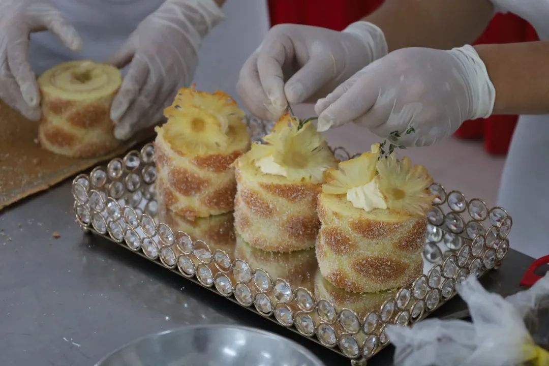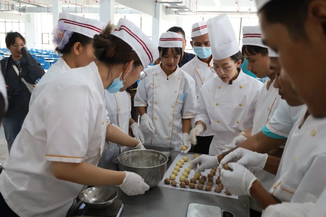活动现场,缅籍厨师们身着整洁的厨师服,在德宏职业学院专业教师的指导下,认真学习菠萝香妃蛋糕和云腿月饼的制作技艺。称量材料、揉面、压皮、包裹馅料、印模成形,缅籍厨师们用手机仔细记录制作步骤,每一个动作都小心翼翼,仿佛在进行一场关于美食的艺术创作。