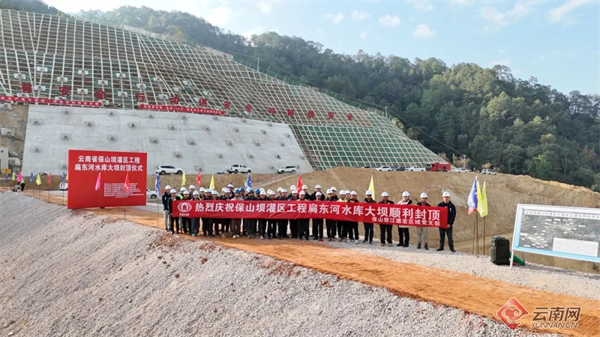 △1月17日,保山坝灌区工程扁东河水库大坝填筑封顶