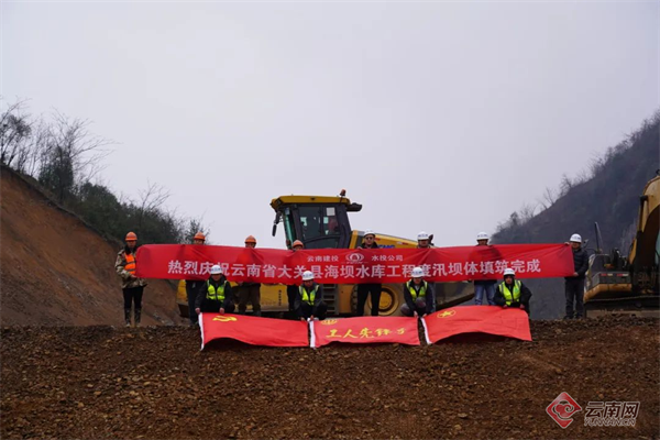 △3月31日,大关县海坝水库工程完成度汛坝体填筑