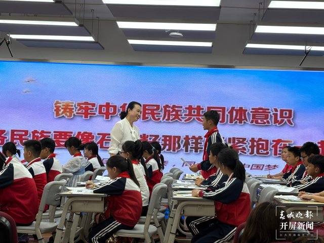 回到杨家中心学校,姜瑛带来一堂生动的课堂展示,把民族团结教育从场馆延伸回课堂。她执教的是道德与法治五年级上册《中华民族一家亲》第三课时。姜瑛以生动鲜活的案例、巧妙的教学设计,将“铸牢中华民族共同体意识”的理念融入课堂。通过情景模拟、小组讨论等互动形式,引导学生深入思考、积极参与,让学生在体验中领悟民族团结的力量和意义。