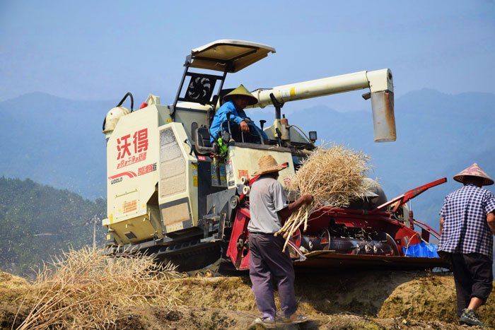 博尚镇农户在采收油菜。