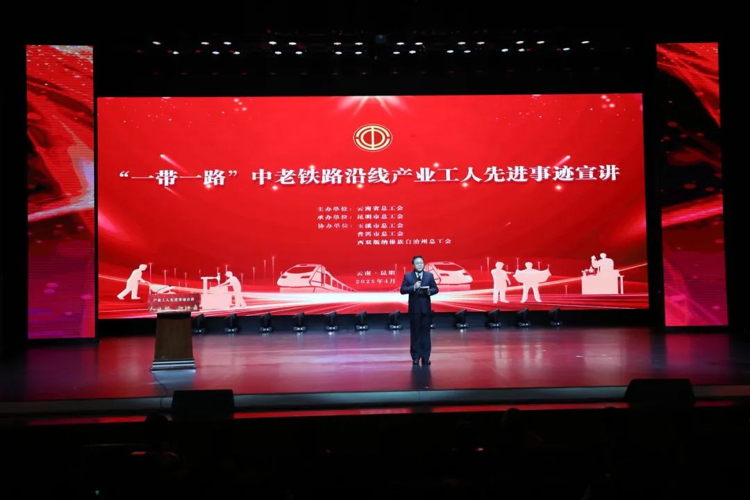 4月25日,“一带一路”中老铁路沿线产业工人先进事迹宣讲活动在昆明市工人文化宫举办,活动通过事迹报告、多媒体展示、互动交流等形式,全方位呈现产业工人的卓越贡献与精神风貌,激发广大工人的工作热情和创新动力,营造全社会尊重劳动、崇尚技能的良好氛围。