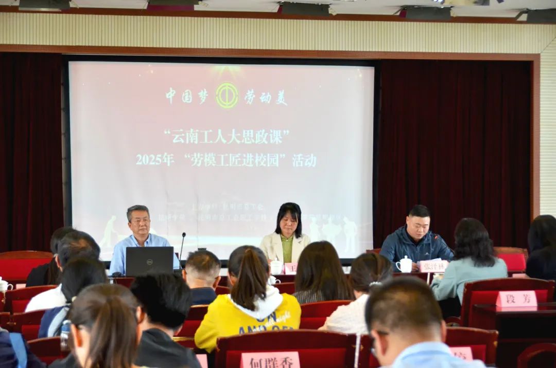 为热烈庆祝“五一”国际劳动节,贯彻落实全国总工会关于创新打造“中国工人大思政课”的要求,4月25日,由昆明市总工会与昆明学院联合主办的“云南工人大思政课”——2025年“劳模工匠进校园”专场宣讲会在昆明学院成功举办,拉开了“共筑昆院梦·奋斗谱新篇”昆明学院2025年“五一”国际劳动节庆祝活动序幕。