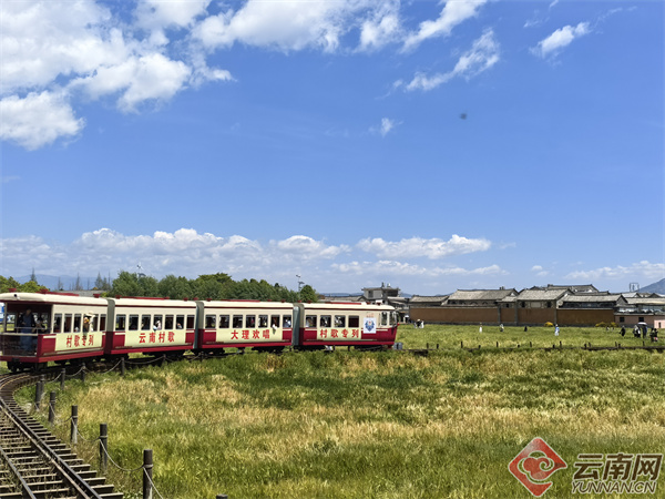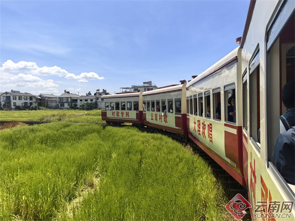 车厢里,来自四川的李女士正举着相机定格女儿趴在车窗边远看稻田的模样,“我们一家三口专门来喜洲旅游的,坐在小火车里慢悠悠的感觉,和城市里太不一样了,能静静感受到属于喜洲古镇的韵味。”