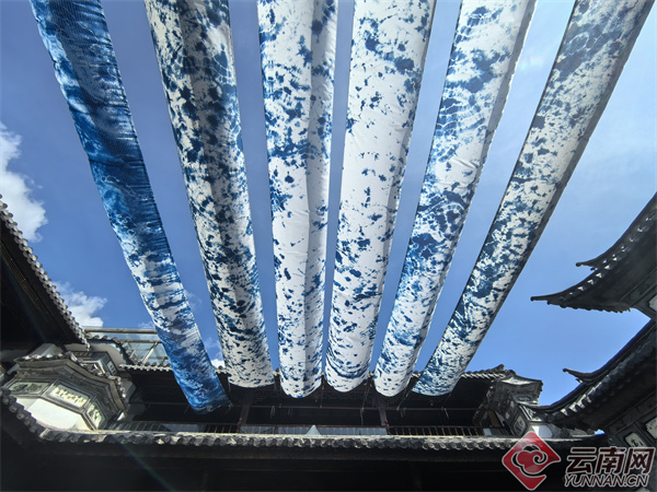 踏入坐落于“民族扎染之乡”大理市喜洲镇周城村的大理市璞真白族扎染博物馆,蓝白交织的扎染布幔从屋檐倾泻而下,白族阿婆指尖翻飞,棉线在素布上缠绕出细密的褶皱,一针一线、一染一晾间,延续着千年的时光密码。