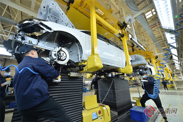 “这是5月下线的第一辆新能源纯电乘用车。截至目前,我们今年交付近4000台,产值2.34亿元。”近日,记者走进北汽云南瑞丽汽车有限公司总装车间,机械运转的节奏声与工具碰撞的金属声交织成独特的工业乐章,占地978亩的厂区内,冲压、焊装、涂装、总装四大工艺车间串联起完整的汽车制造链条,生产线上的每一道工序都彰显着现代化制造的精密与效率。